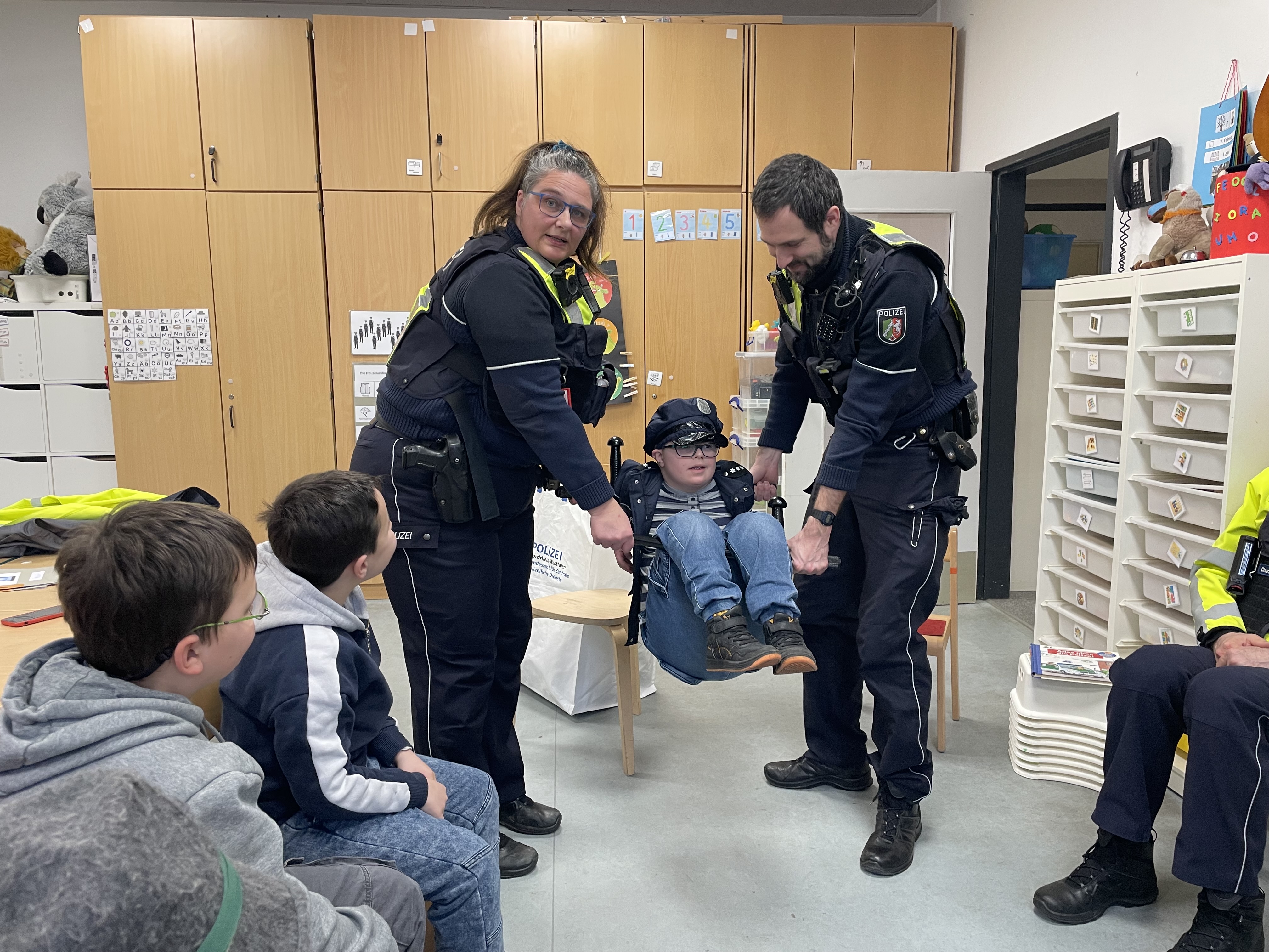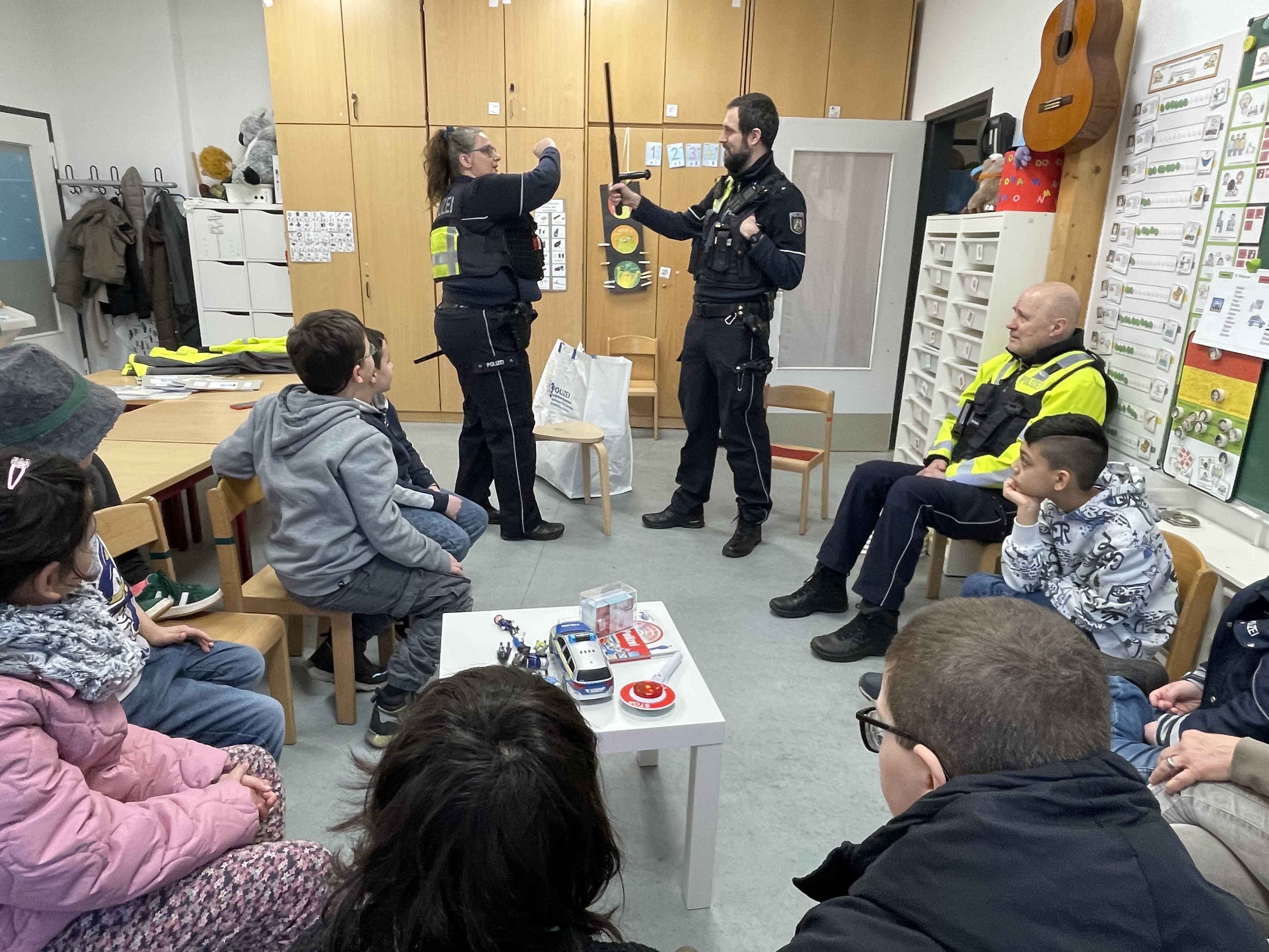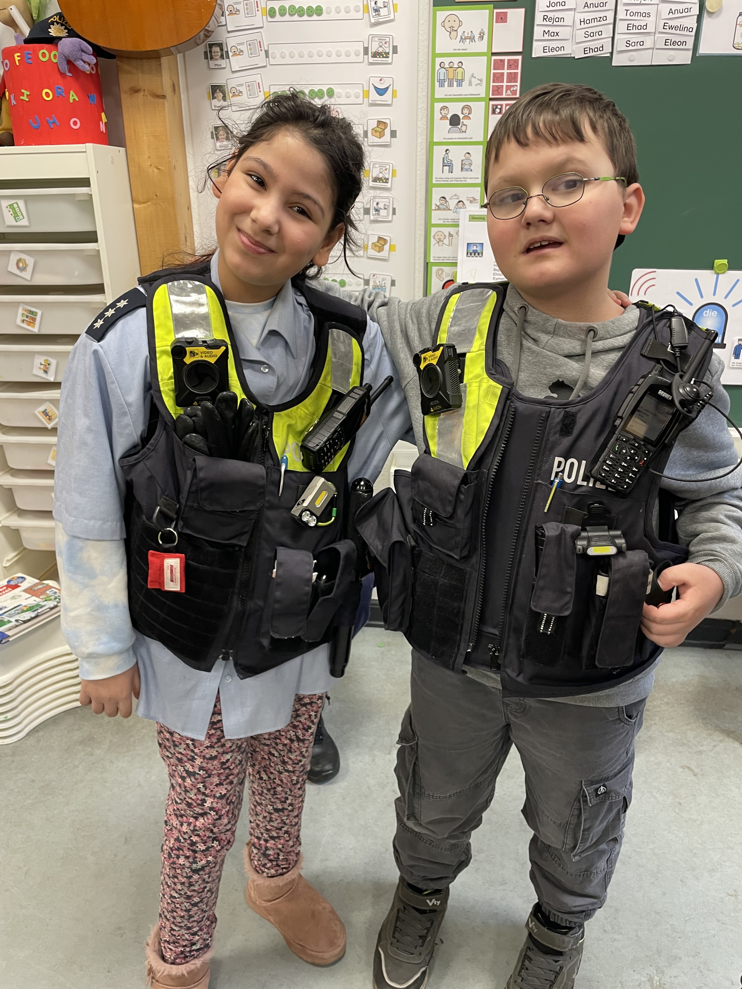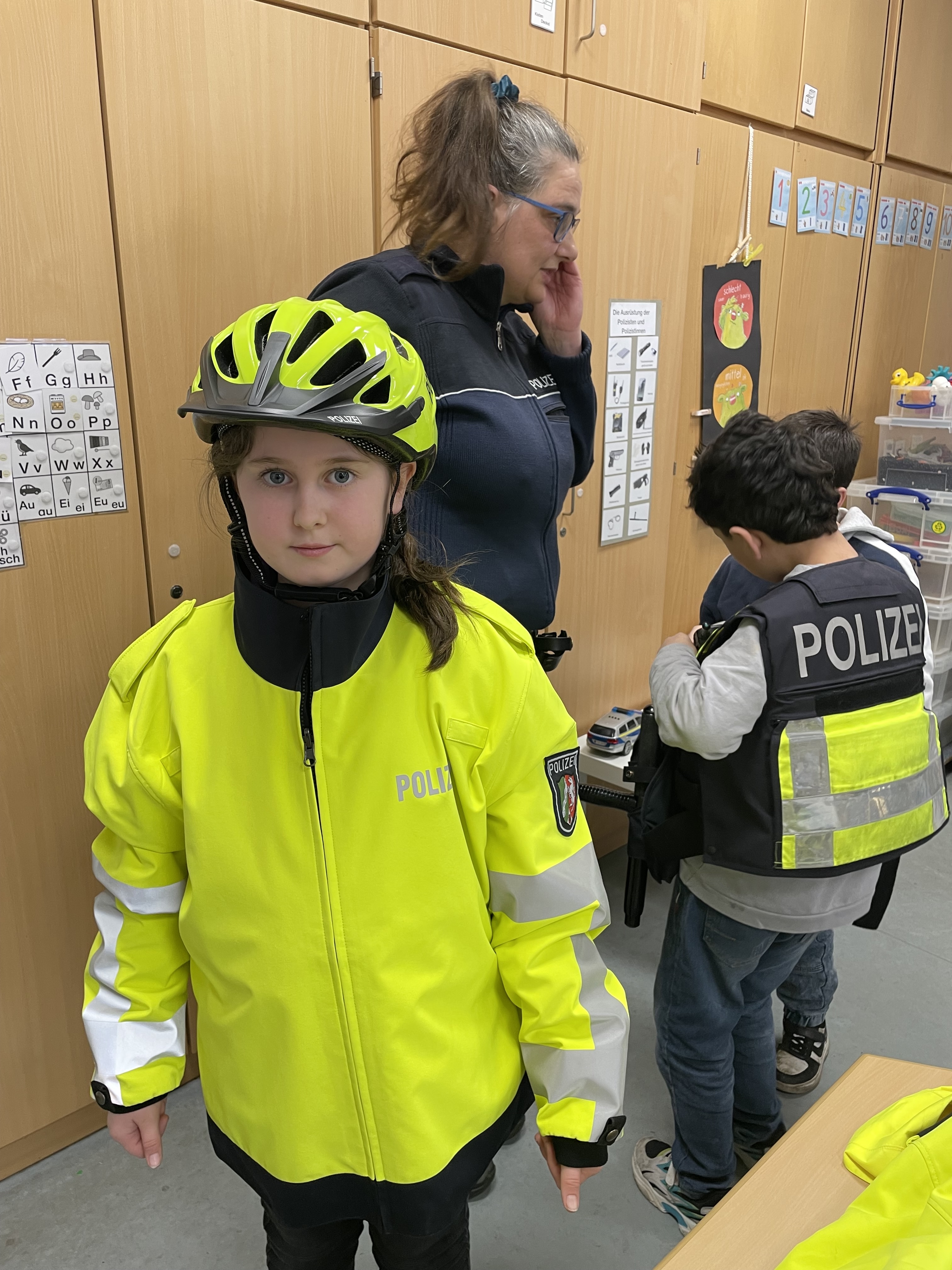 Wie funktioniert ein Funkgerät? Wie schwer ist die Polizeiweste? Was trägt die Polizei auf dem Fahrrad? Und was ist eigentlich ein Tourniquet?