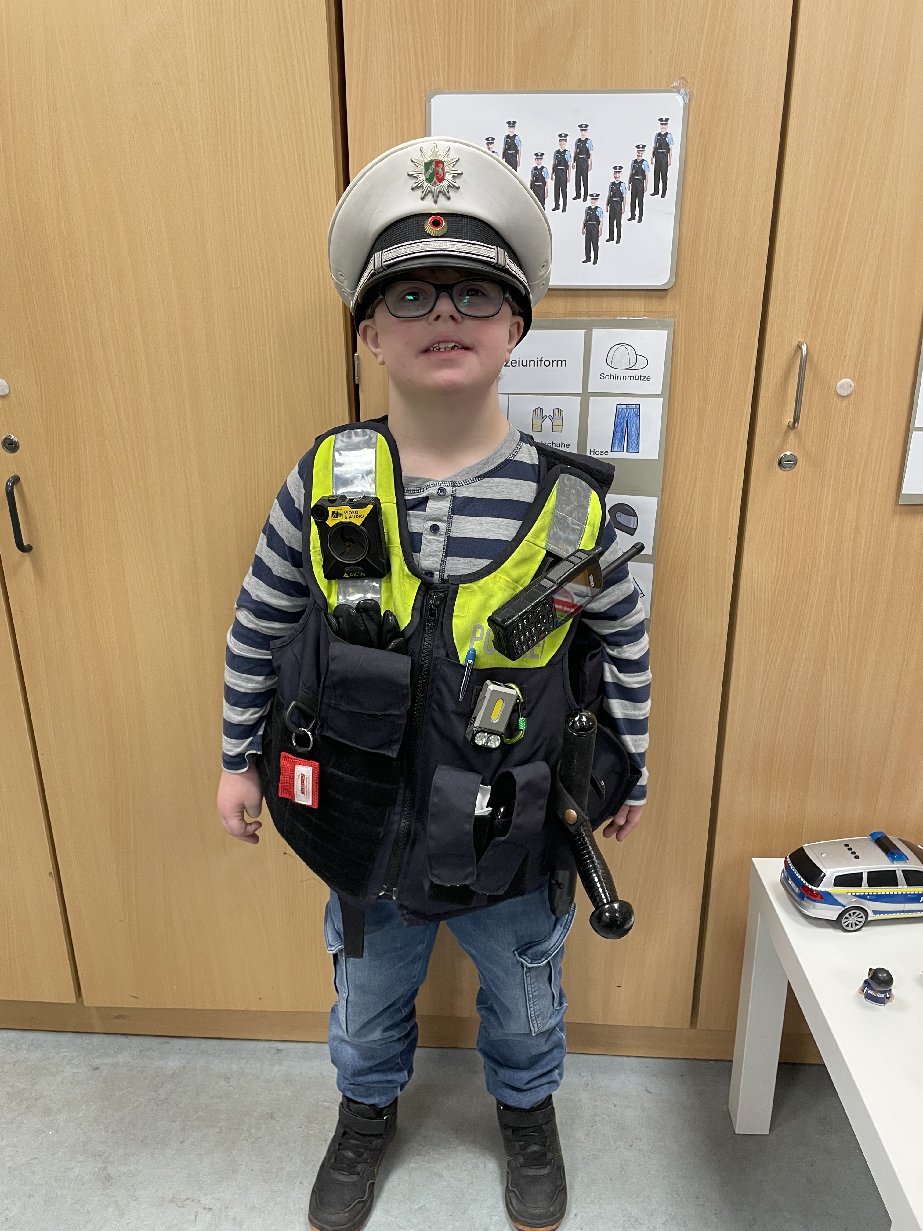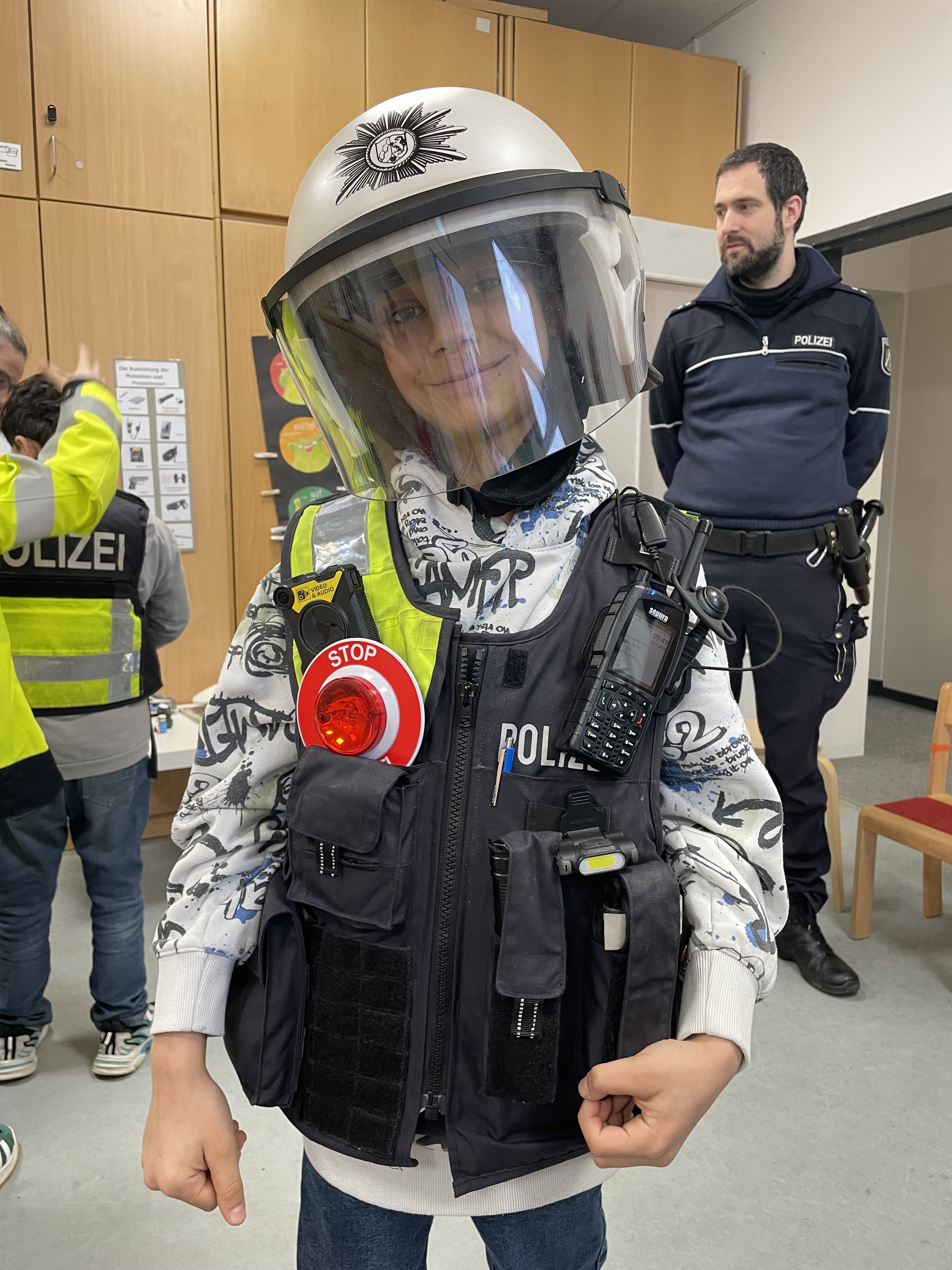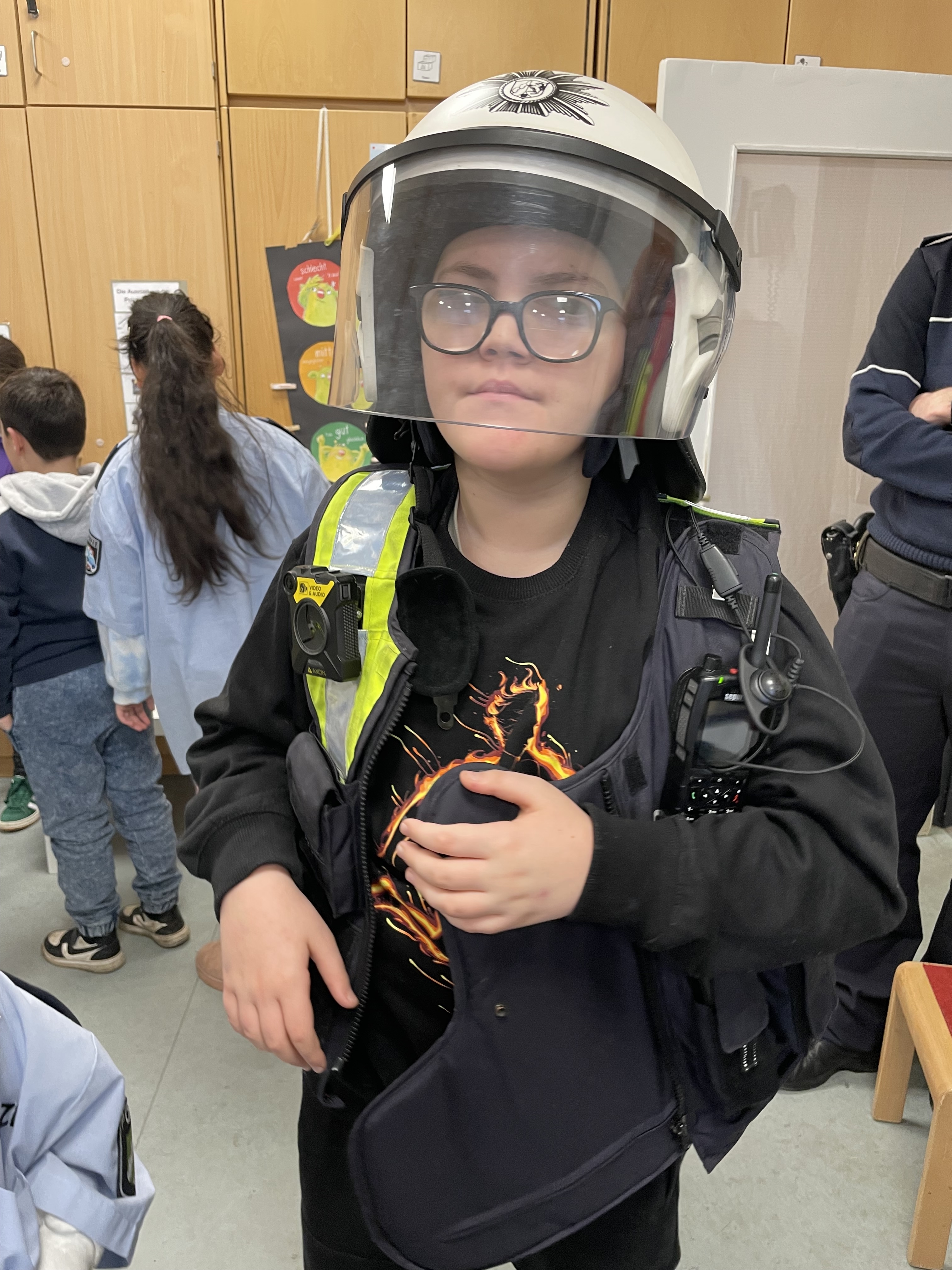 Die Polizeiweste ist ganz schon schwer.